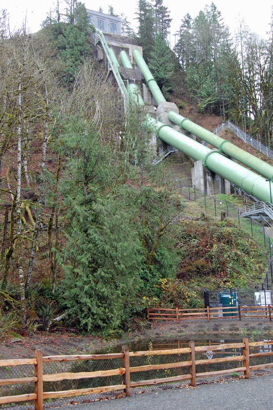 Side trip: At the east end of the Hall creek trestle, there are two trails. The appropriately named Zigzag trail goes up the mountainside a quarter mile or so and forks. The right fork goes another quarter mile or so to a waterfall on Hall creek. The left fork continues up to logging roads and other trails. Back at the trestle, the Hall creek trail goes down to old US 10 in Ollalie state park.